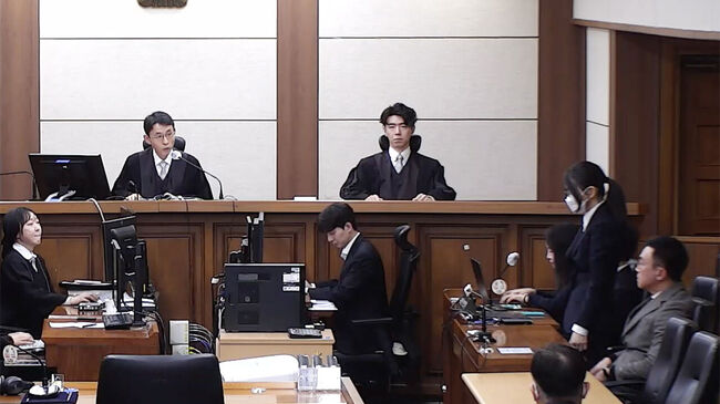 ▲ 통일교 금품수수 등 혐의로 구속기소된 김건희 여사가 28일 서울중앙지방법원에서 열린 1심 선고공판에서 실형을 선고받고 있다. (사진=서울중앙지법 제공)
