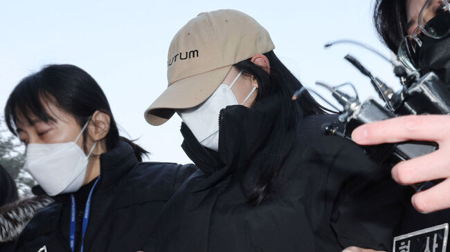 ▲ 서울 강북구 수유동 모텔에서 남성 2명을 숨지게 한 혐의를 받는 20대 여성 A 씨가 12일 서울북부지법에서 영장실질심사를 받기 위해 출석하고 있다. (사진=연합뉴스)