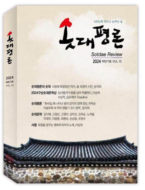 ‘솟대평론’ 15호에는 △사랑에 목말랐던 여자, 故 최영자 시인에 대한 시 세계를 소개했고 △2024구상솟대문학상 수상자 김묘재에 대한 특집 그리고 △시/강지혜, 고정선, 고정아, 김미선, 김옥순, 노차돌, 이대우, 이봉명, 최명숙 △동화 손성일 △우창수의 희곡 ‘머니 바이러스’ 등 많은 작품이 담겨 있다.