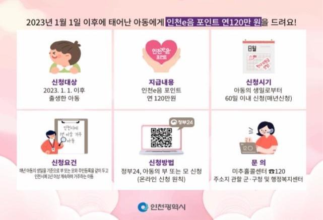 [한국법률데이터 e-news25]`1세부터 7세까지` 인천시, 천사지원금으로 든든한 양육 지원