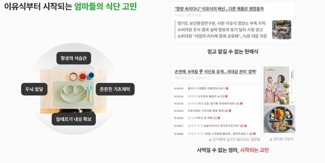 특히 주로 엄마들이 아기 식단을 전담하게 되는 이유식 시기에, 회복되지 않은 상황에서 겪는 심리적 부담감과 외로움을 덜 수 있도록 설계됐다.