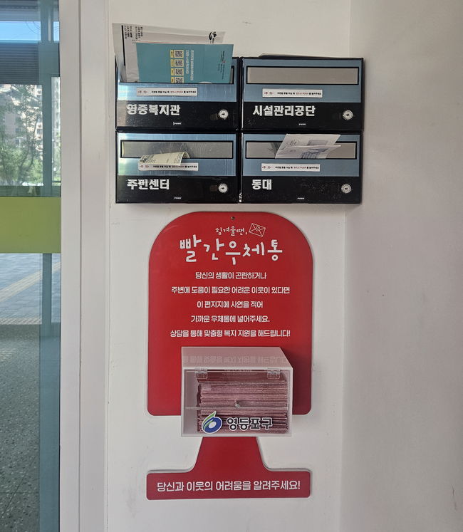 빨간우체통 설치 모습.‘빨간우체통’은 도움이 필요하지만 직접 요청하기 어려운 위기 주민을 위해 마련된 제도로, 지역 내 복지 사각지대를 발굴하고 위기가구를 지원하는 데 중점을 두고 있다.