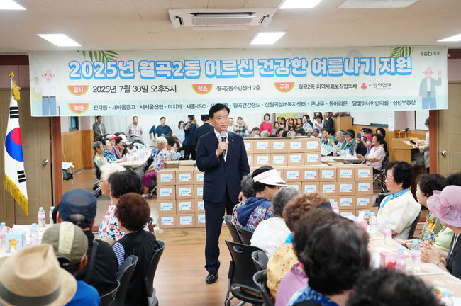 `2025년 월곡2동 어르신 건강한 여름나기 지원` 행사.행사는 지난 7월 30일 중복을 맞아 월곡2동 주민센터에서 진행됐으며, 70명의 어르신을 초청해 수박과 떡 등 여름 간식을 제공하고, 상월곡 실버복지센터 하모니카팀의 공연도 선보였다. 특히 사전 준비된 보양꾸러미는 행사 당일 참석자뿐 아니라 직접 방문이 어려운 어르신 가정에도 전달돼 총 200명에게 제공됐다.