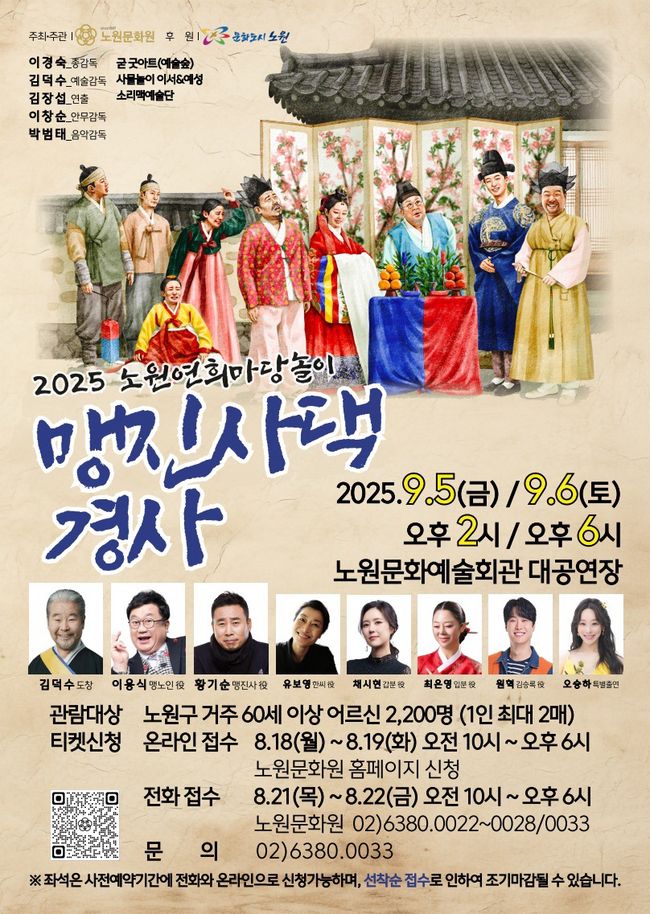 노원구가 노원문화원과 함께 지역 어르신을 위해 연희마당놀이 <맹진사댁 경사>를 전석 무료로 선보인다.