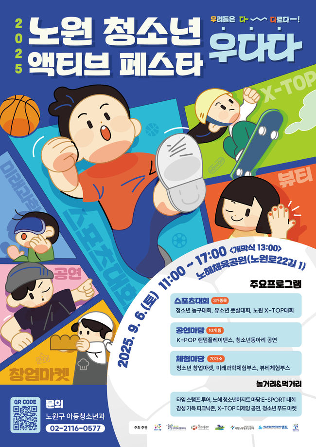 서울 노원구가 노해체육공원에서 청소년의 개성과 에너지를 발산할 수 있는 스포츠·문화 축제 ‘2025 노원 청소년 액티브 페스타 우다다’를 개최한다.