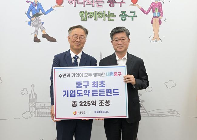 서울 중구(구청장 김길성)는 지난 13일 비에이파트너스(대표이사 이종승)와 함께 ‘중구 기업도약든든펀드’ 벤처투자조합을 결성했다고 18일 밝혔다. 이번 펀드는 중구 최초의 벤처투자펀드로, 지역 내 잠재력 있는 기업을 발굴·육성하는 든든한 성장 기반이 될 전망이다.