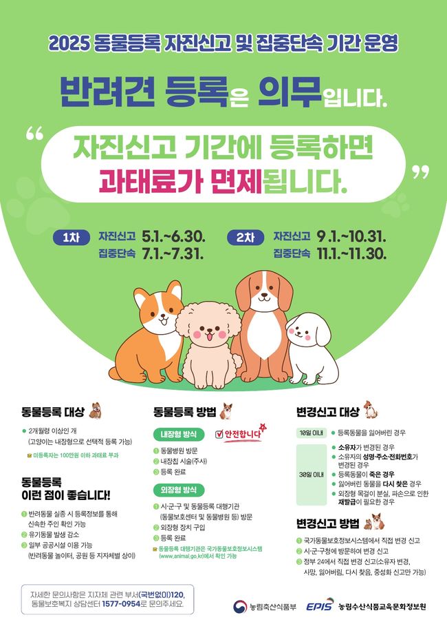 2025년 동물등록 자진신고 및 집중단속 기간 운영 홍보 포스터.jpg