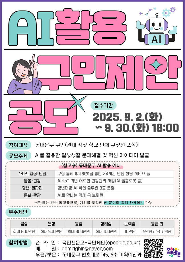 동대문구, ‘AI 구민제안 집중공모’ 실시…최대 800만 원 시상