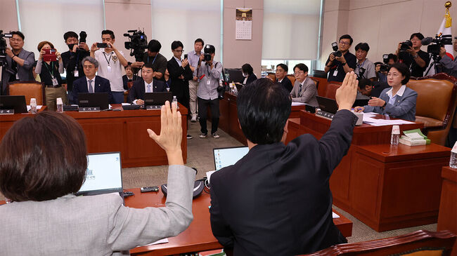 앞서 지난 5일 법안심사1소위 주최로 열린 입법청문회에서는 이재명 대통령이 불법 대북송금 의혹 사건과 무관하다고 주장해 온 배상윤 KH그룹 회장 등이 민주당 요구로 무더기로 증인·참고인으로 채택돼 논란이 된 바 있다.