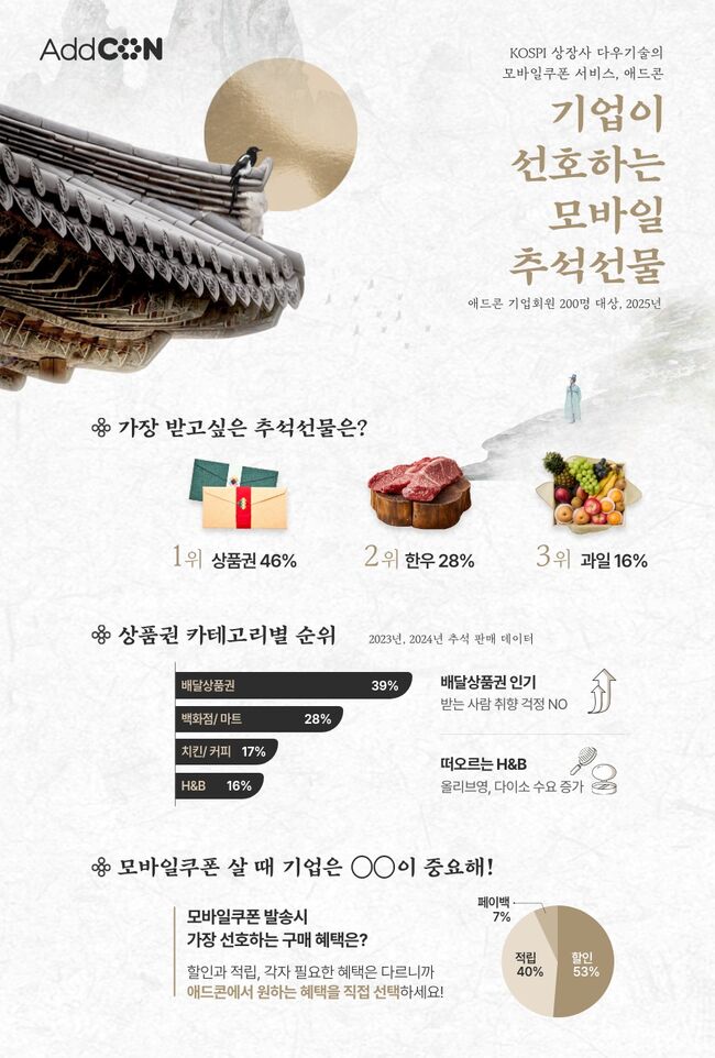 ▲ 다우기술이 운영하는 ‘애드콘’이 추석 기업고객이 받고 싶은 선물 1위는 상품권으로 조사됐다고 밝혔다. (사진=다우기술 제공)
