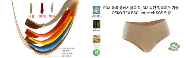 기존 기저귀형 요실금 제품에 대한 불편과 심리적 부담을 해결하기 위해, 특허 기반의 다층 흡수 구조, 항균 은사(Ag+) & 대나무 섬유, PFAS-Free 방수 소재 등을 접목해 누구나 스타일과 편안함을 동시에 누릴 수 있는 제품을 지향하고 있다.