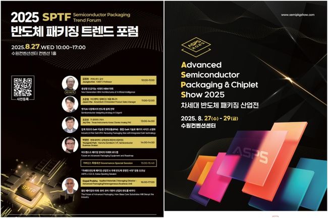 수원시와 경기도가 공동주최하는 `2025 차세대 반도체 패키징 산업전(ASPS 2025)`이 8월 27일부터 29일까지 수원컨벤션센터에서 열린다. ISES KOREA 2025(글로벌 반도체 경영진 서밋)도 동시에 개최된다.