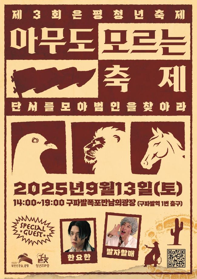 은평구 `아무도 모르는 축제` 홍보 포스터.‘아무도 모르는 축제’는 청년이 가진 가능성과 불확실함, 비주류적 매력을 표현하는 한편, 앞으로는 ‘누구나 아는 축제’로 성장시키겠다는 의미를 담고 있다.